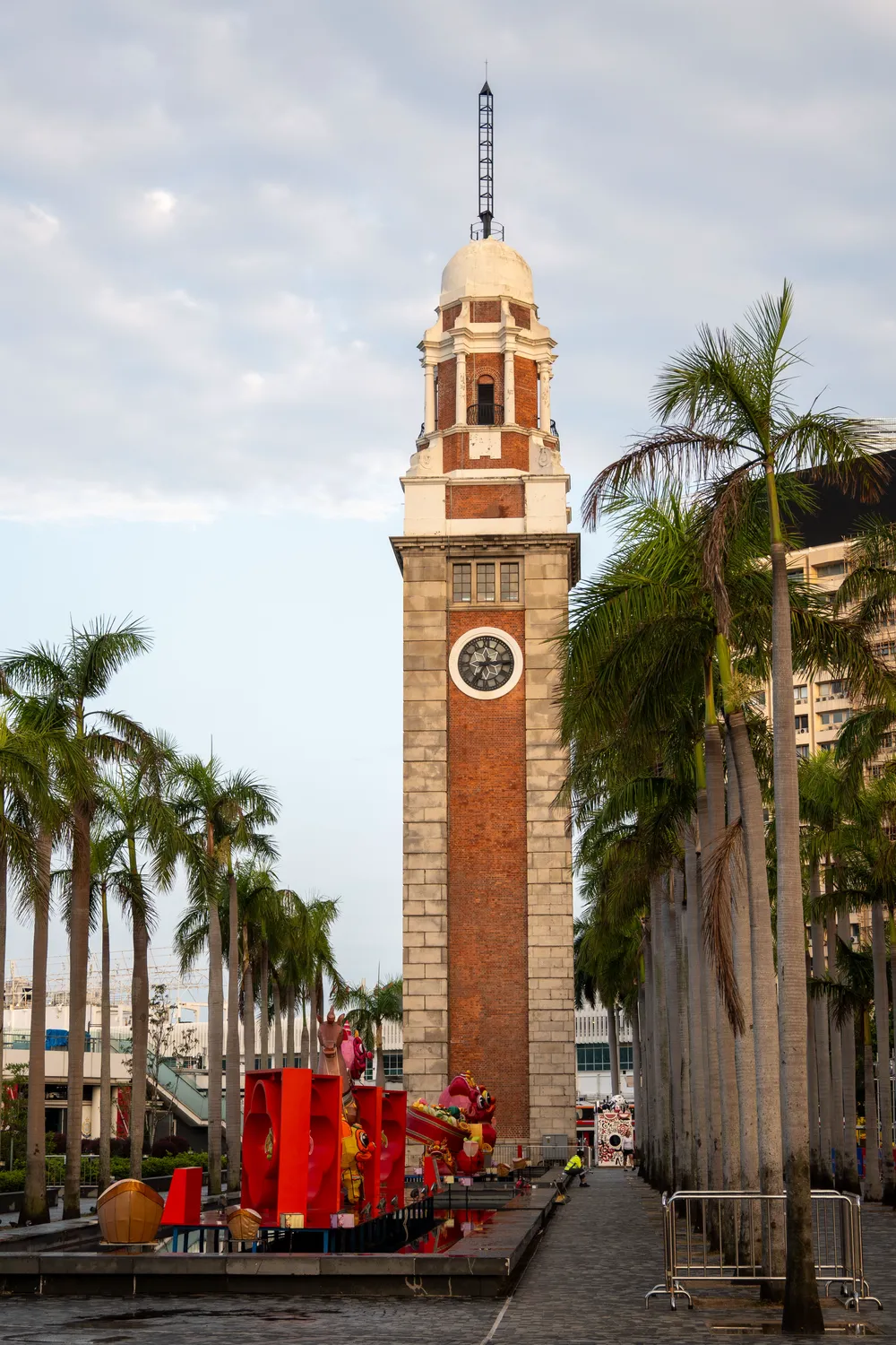 码头边上有一个钟楼,这是尖沙咀钟楼,曾经是京九铁路的终点站(后来经过迁移和重建,目前理论上的京九铁路的终点在红磡站。随着香港西九龙站投入运营,京九铁路在香港内成为东铁线,失去了作为京九铁路的作用)