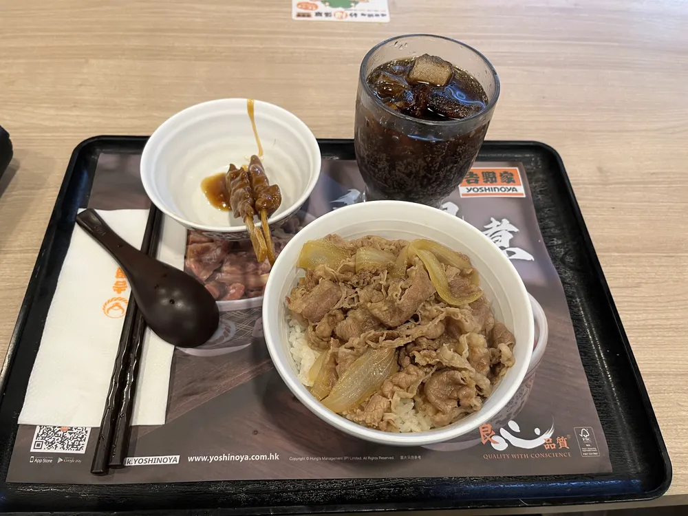 因为众所周知,在香港,吃饭消费非常高,于是我就近选择了一家吉野家,毕竟在日本这可是穷人的天堂,感觉在香港应该也是平价的选择(我个人对吃的并不那么讲究)
