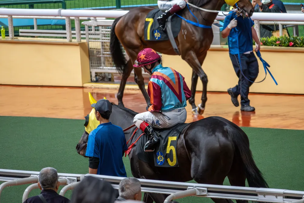 接下来会背着骑手再绕几圈,发现香港赛马的骑手好像基本都是欧美人,基本上看不到香港本地的骑手
