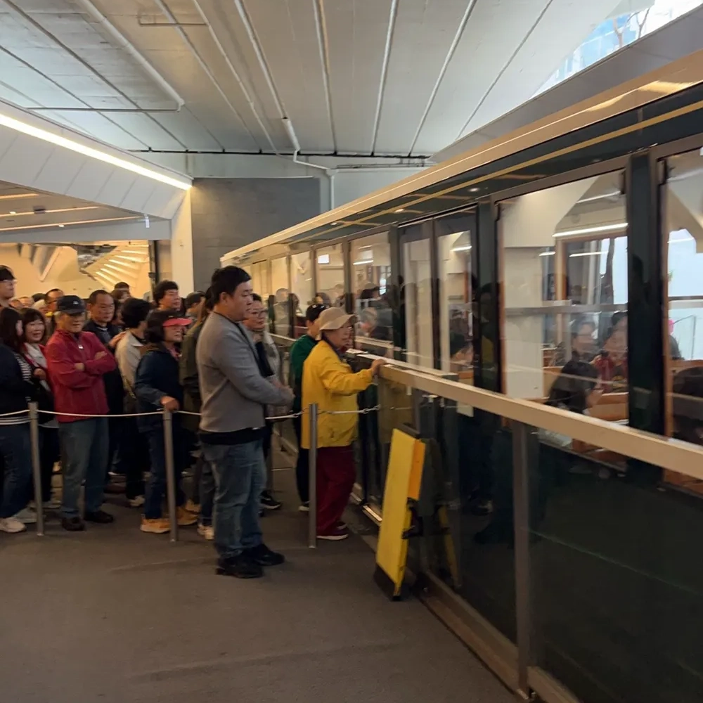 坐山顶缆车的人非常之多,不过感觉这个缆车载客量还是非常大,即便挤了很多人,最后没有座位站着的人还是很少的