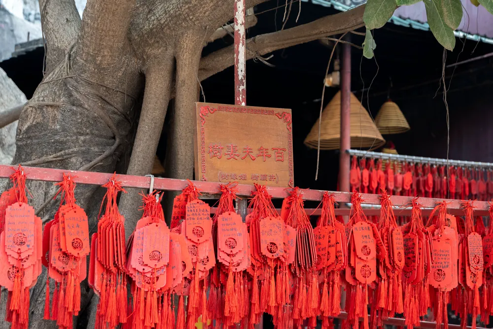 里面有一个百年夫妻树,上面挂了好多许愿牌,也是难得在那么中国风的庙里看到很多外国友人的留言