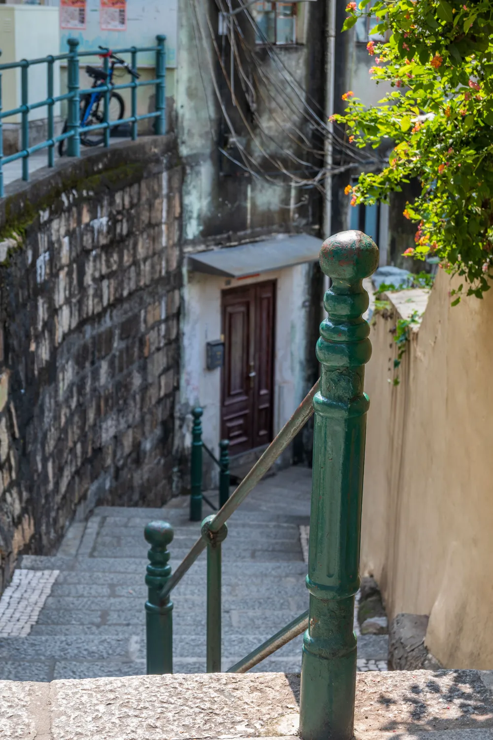不过路上看到有一个巷子挺有意思的,是一个旋转向下的楼梯,毕竟是澳门的历史街巷,而且可以看出澳门这里的地形也是高低不平的