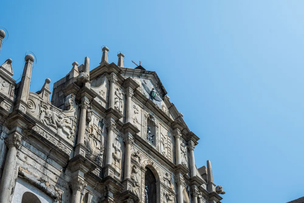 大三巴牌坊其实是一个教堂的“正脸”,之后因为一场大火导致教堂被烧毁,只剩下了石砌的前壁以及前面非常长的台阶