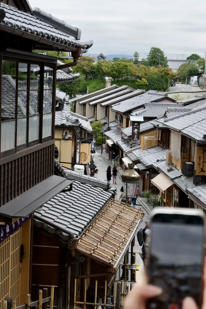 出去的时候刚好可以从二三年坂去看看法观寺,并且好巧不巧拍到一张这样的照片