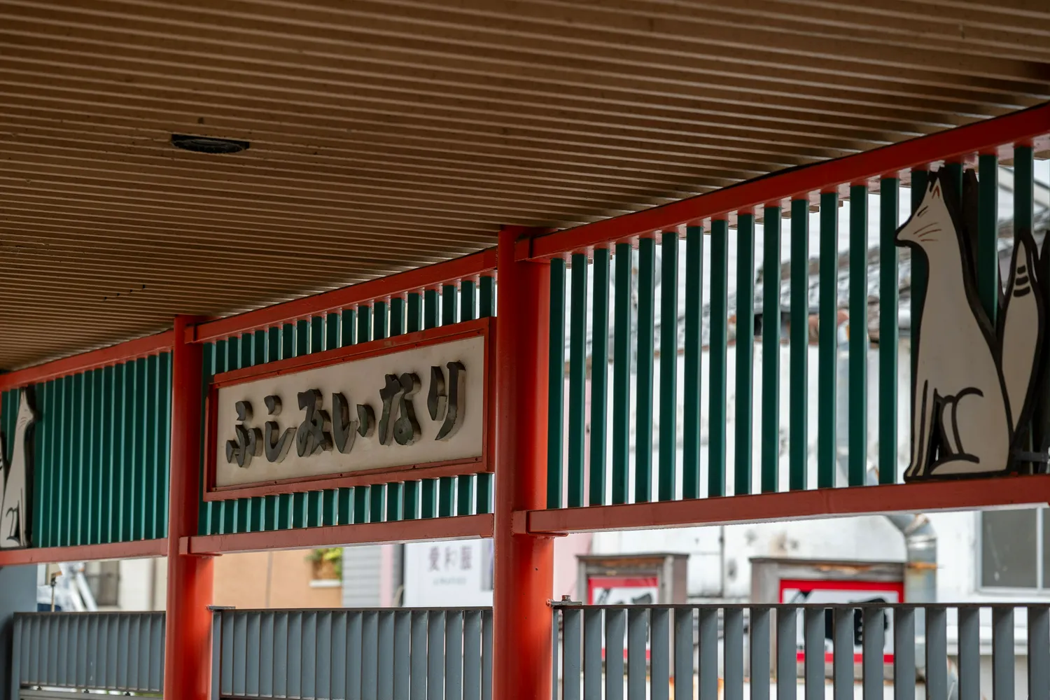 伏见稻荷站还是挺有特色的,车站风格都是稻荷大社风格,车站旁边还有一个小狐狸