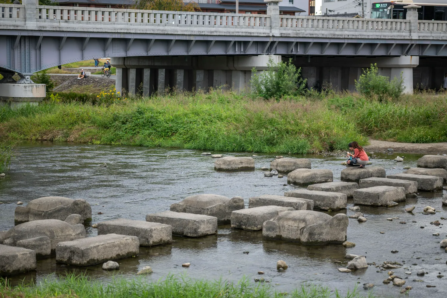 这里叫做鸭川公园,在《玉子的爱情故事》里有一幕就是发生在这里,我印象中当时玉子(女主)掉到鸭川里的时候,满屏幕的“她坠入了爱河”哈哈哈哈