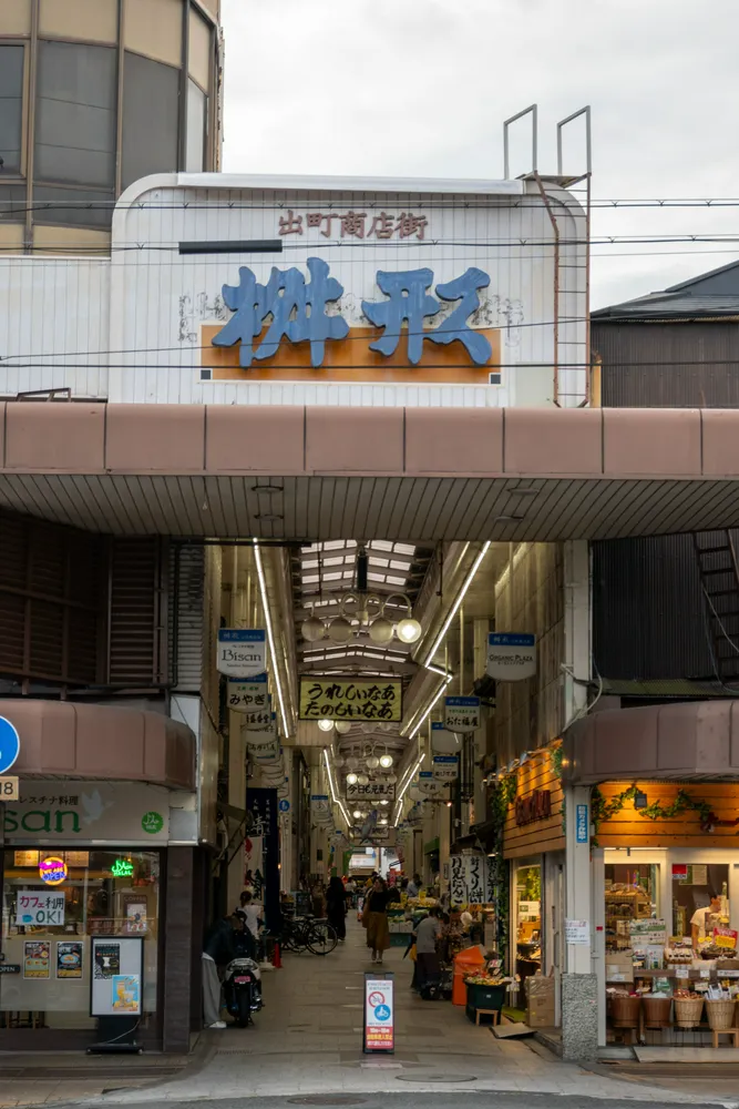 在鸭川公园的旁边便是“玉子市场”的原型——出町商店街,这条商店街里还是非常有生活气息的,有卖书的,卖菜的等等,也有动画里卖花的店,但是不得不说我看了一圈没看到有卖年糕的,我甚至在一家卖豆腐的店旁边站了好久,看了半天才发现是卖豆腐的(笑死)