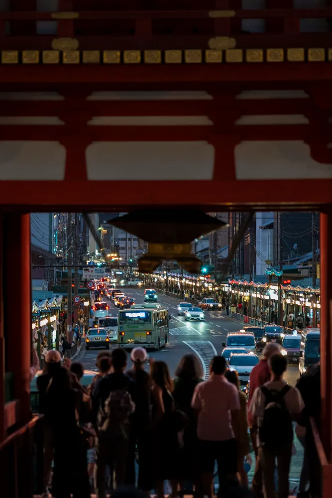但是我最喜欢的还是西门的景色,这样晚上可以拍到神社大门和背后车水马龙同框,我还是挺喜欢这种感觉的,有一种现代和传统碰撞的感觉