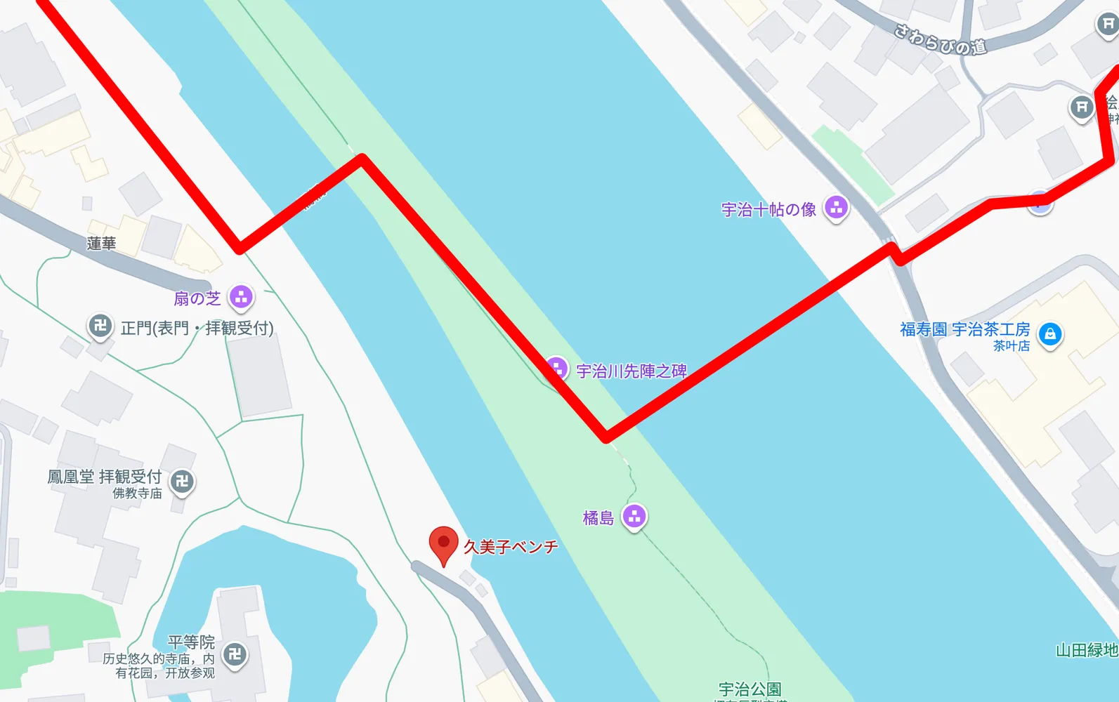 接下来我前往宇治公园,这个公园里有很多当地人在这里遛狗,另外在动画《吹响吧上低音号》中久美子(女主)会在放学后在这里吹低音号,但是她吹低音号的那个凳子我没去成(我当时搞错了),那个地方还可以在地图上找到,就挺神奇的