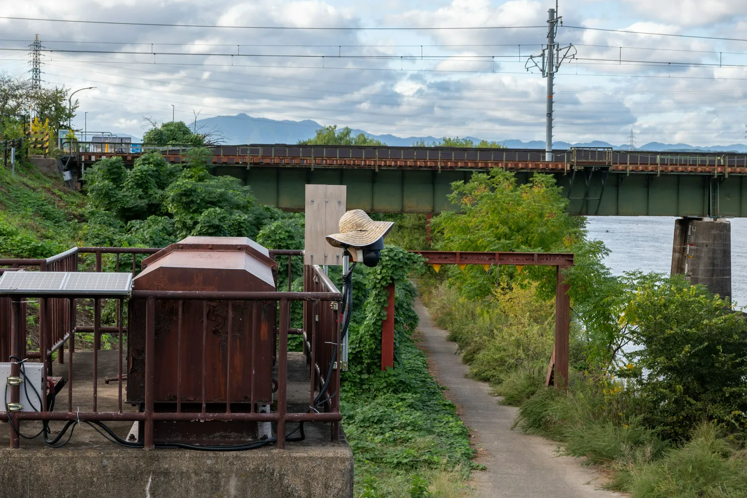 另外我在河边看到一个摄像头,不知道是谁想出来的在一个摄像头上放一个草帽,非常有趣