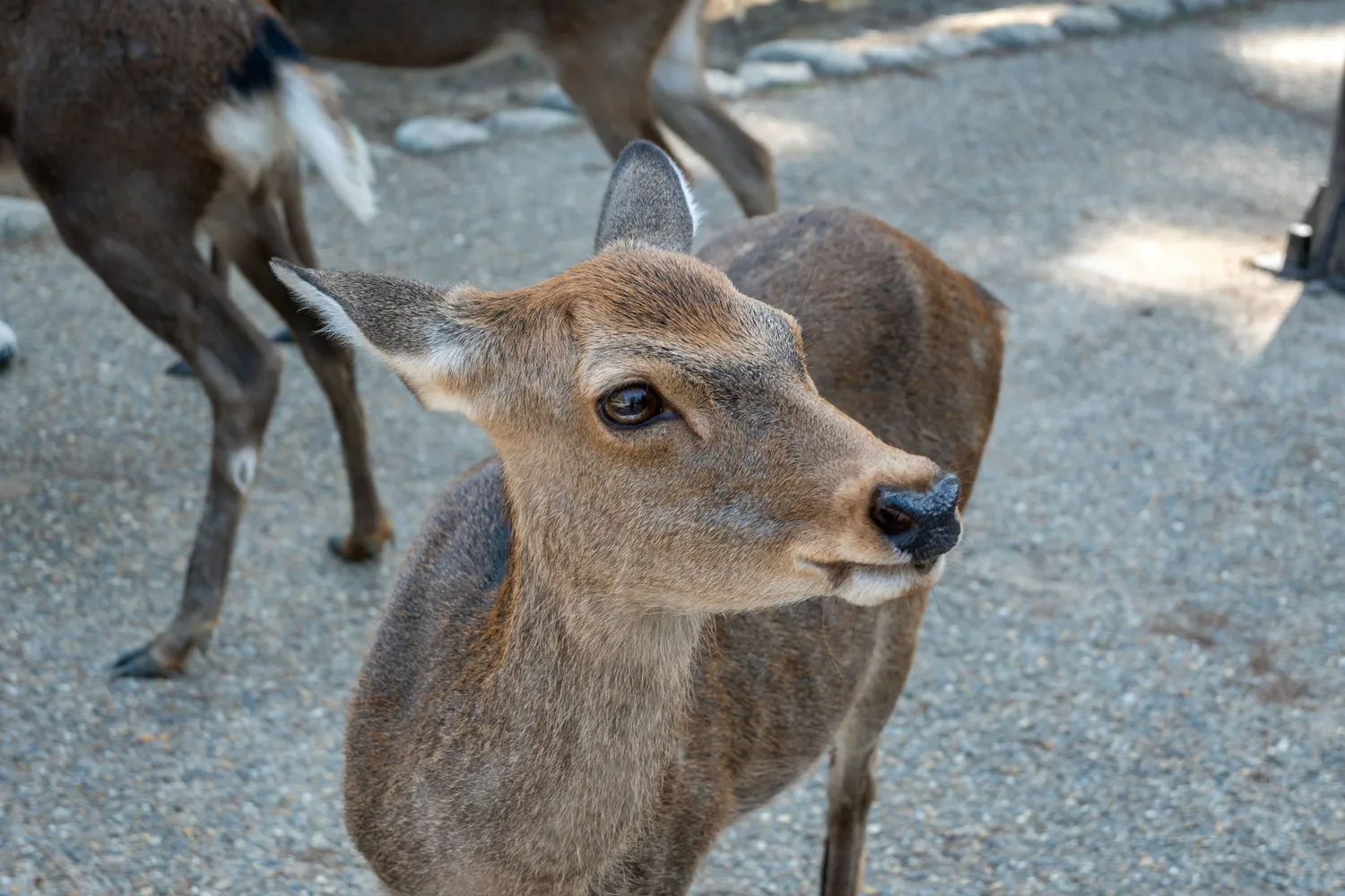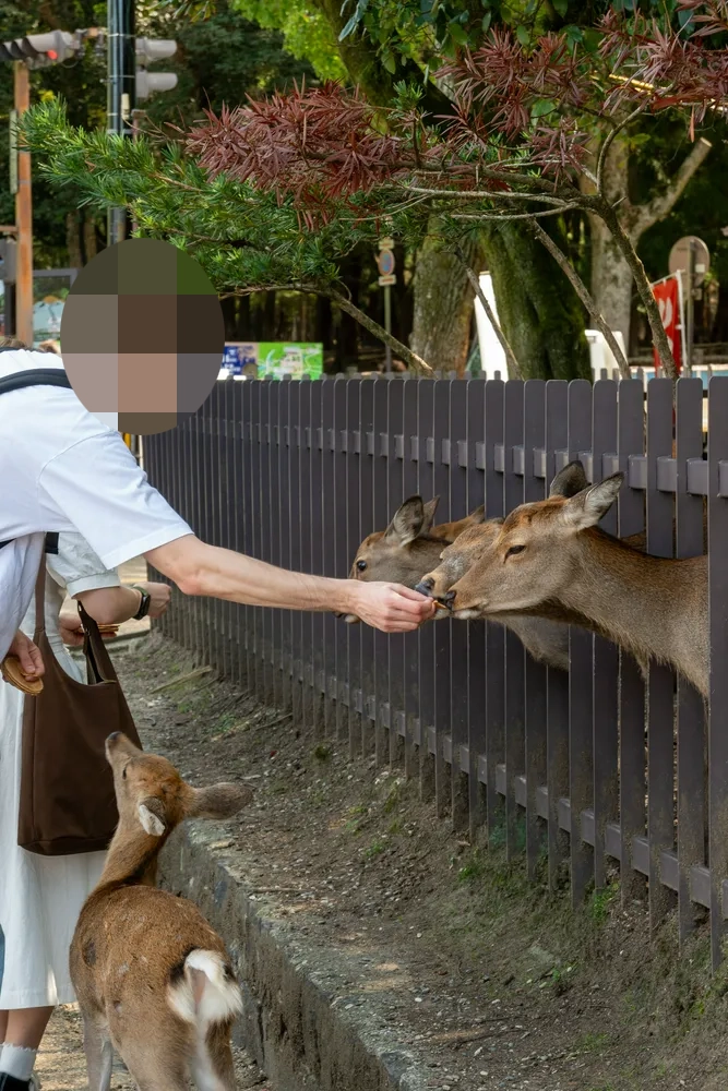 其实我个人感觉奈良公园是一块区域,在出了近铁奈良站往前走一会儿就可以看到小鹿了(所以有小鹿的地方就是奈良公园?)