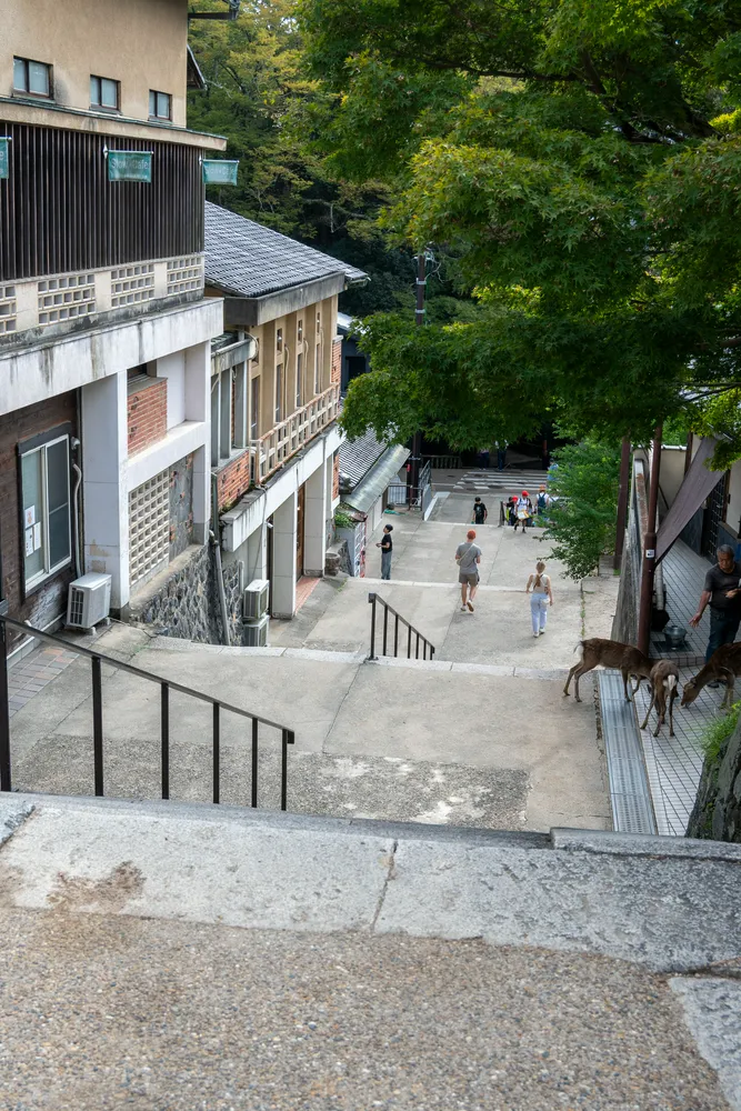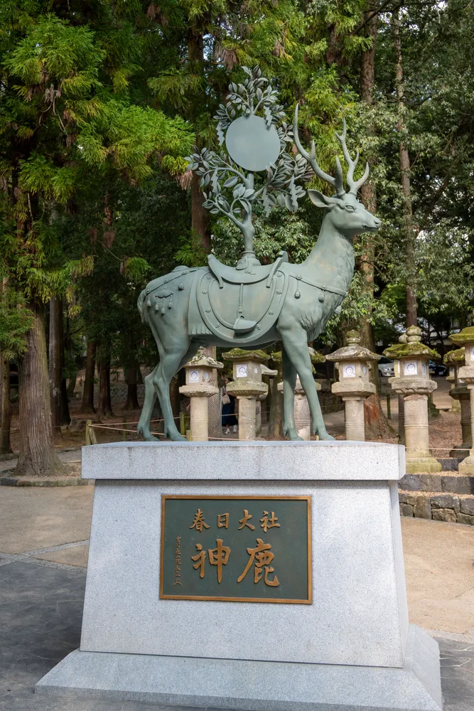 离奈良我打算坐公交车去近铁车站的时候发现,原来我从若草山来的那条路不是正门,正门有一个神鹿的雕像