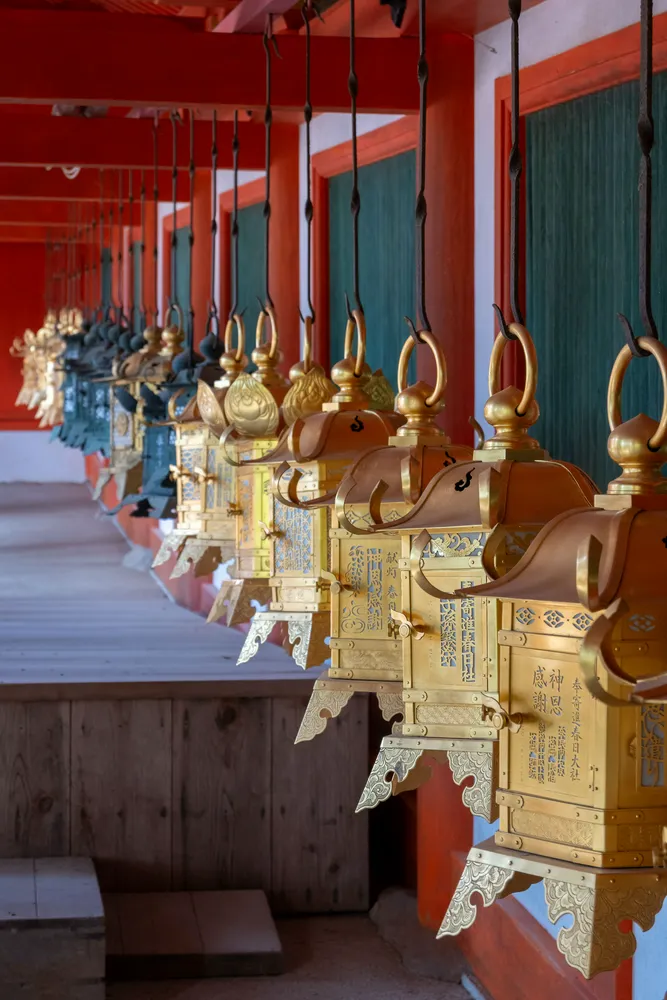 春日大社里以吊灯笼而闻名,所以一进门顺着指引路线就能看到一排吊灯笼