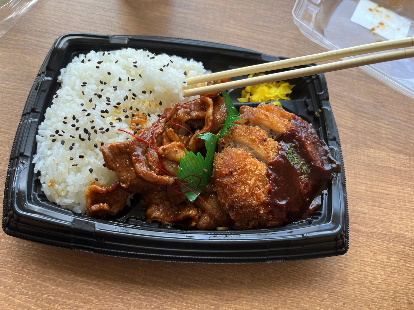由于这个地方出了这条步道附近以外荒无人烟,只能去旁边的罗森买个盒饭(最正宗的预制饭),但是我个人觉得味道不差,主要便宜